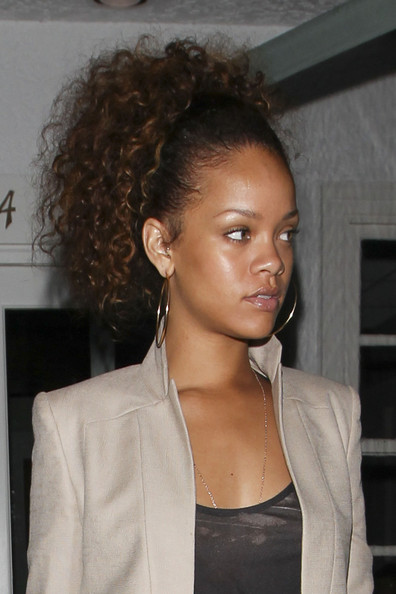 Rihanna has been spotted around town wearing a curly brown do and I have to say I love it. I was getting a wee bit tried of the bright red and I think this is a perfect way to usher in Fall 2011. I love the look! Paired with very minimal makeup, maybe she's only wearing a little concealer, mascara, and gloss this new hair looks relaxed and laid back.